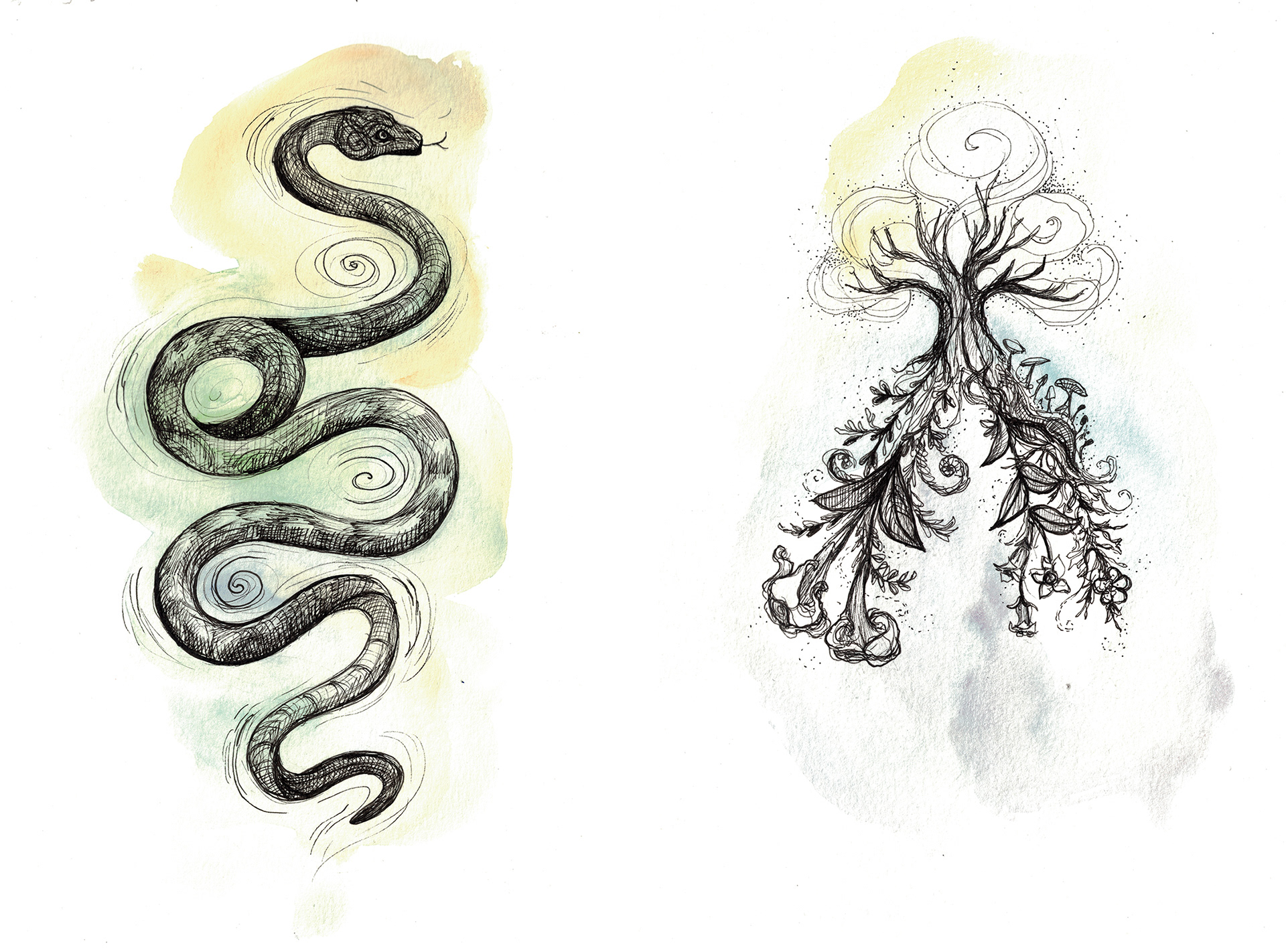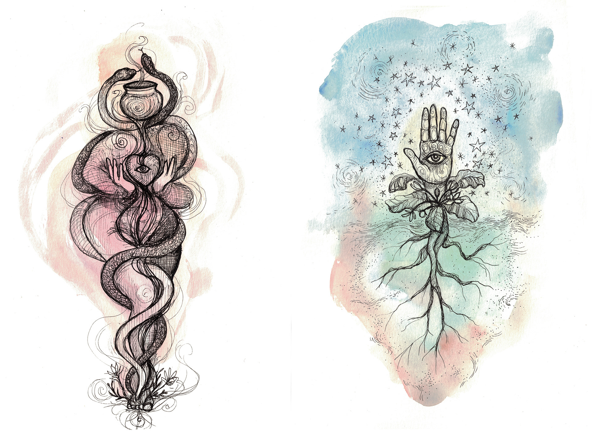 Art for the cover of "Anatomy of a Witch" and a selection of interior illustrations for chapter headings.